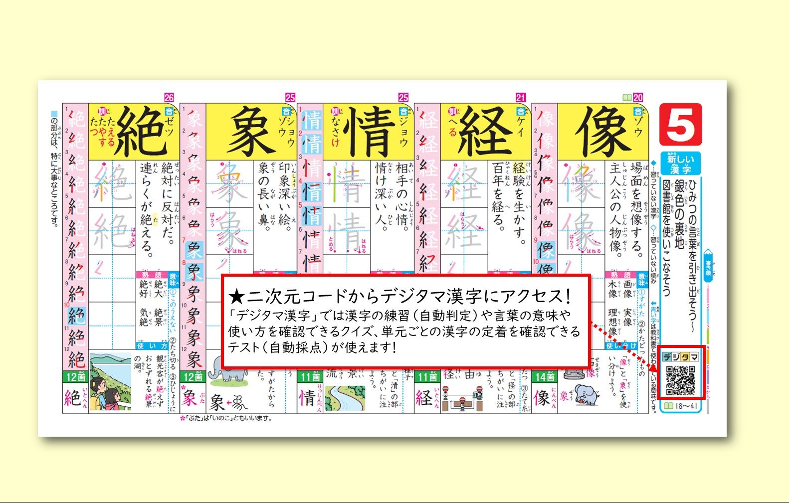 ドリル内の二次元コードからタブレットドリル「デジタマ漢字」にアクセスすることができます。