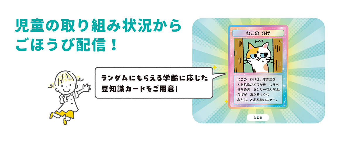 1.デジタルカード・・・課題をこなすとポイントをゲットでき、たまったポイントでガチャを回すと、ランダムでカードをゲットできます。