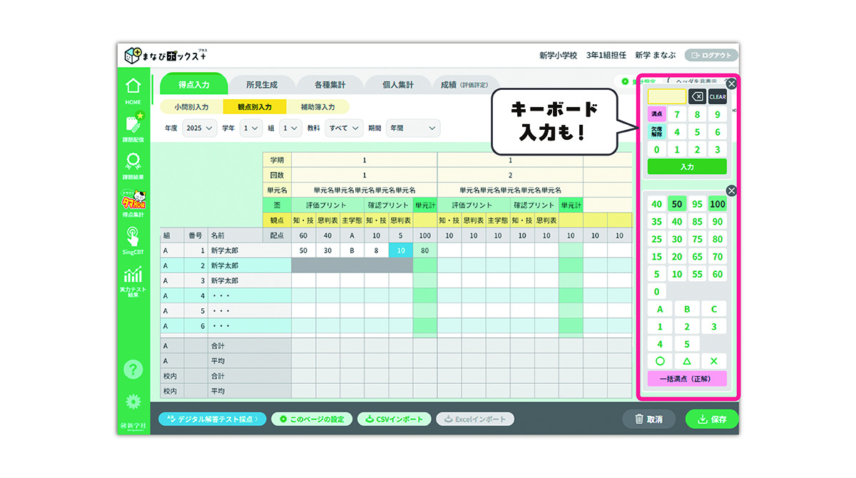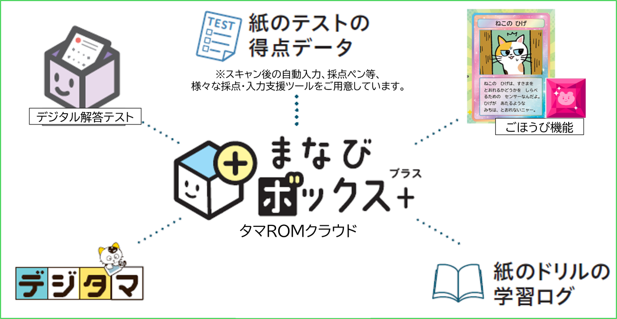 基本機能は踏襲し、デジタル解答テストやデジタマ、新学社のデジタル得点と連携できます。