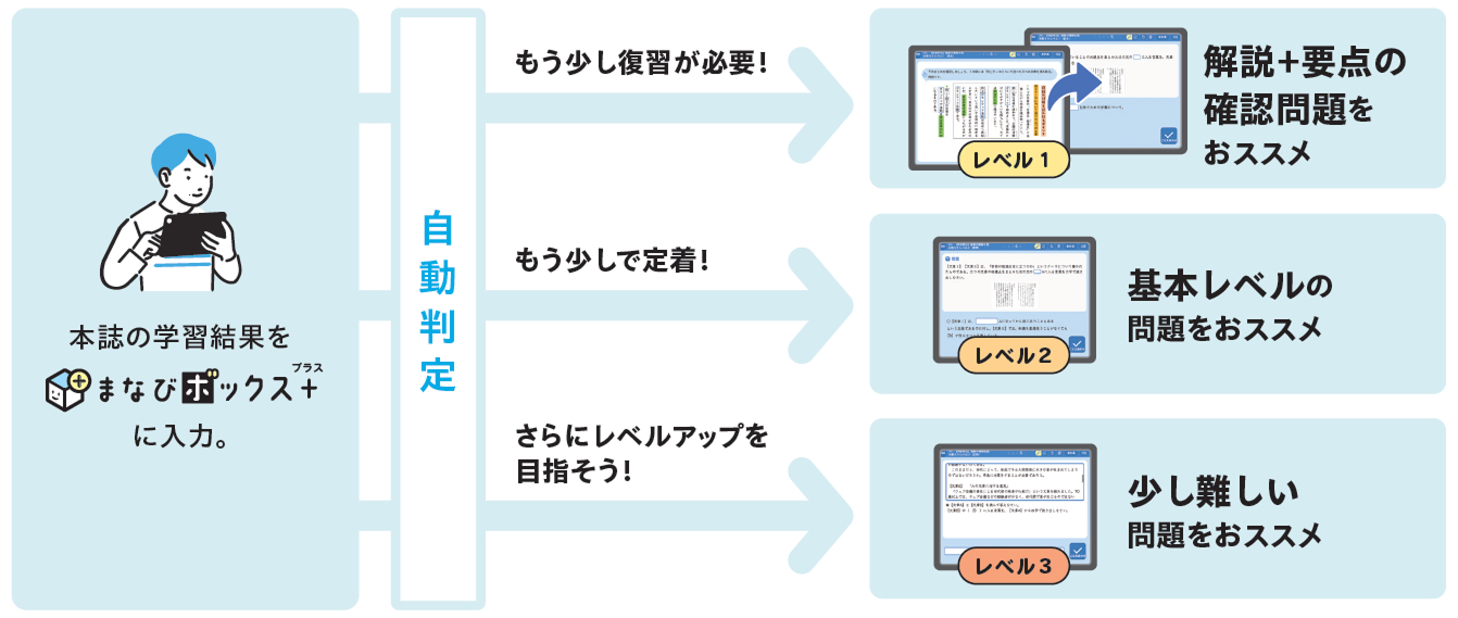 自分のレベルで取り組めます。※まなびボックス+の登録が必要