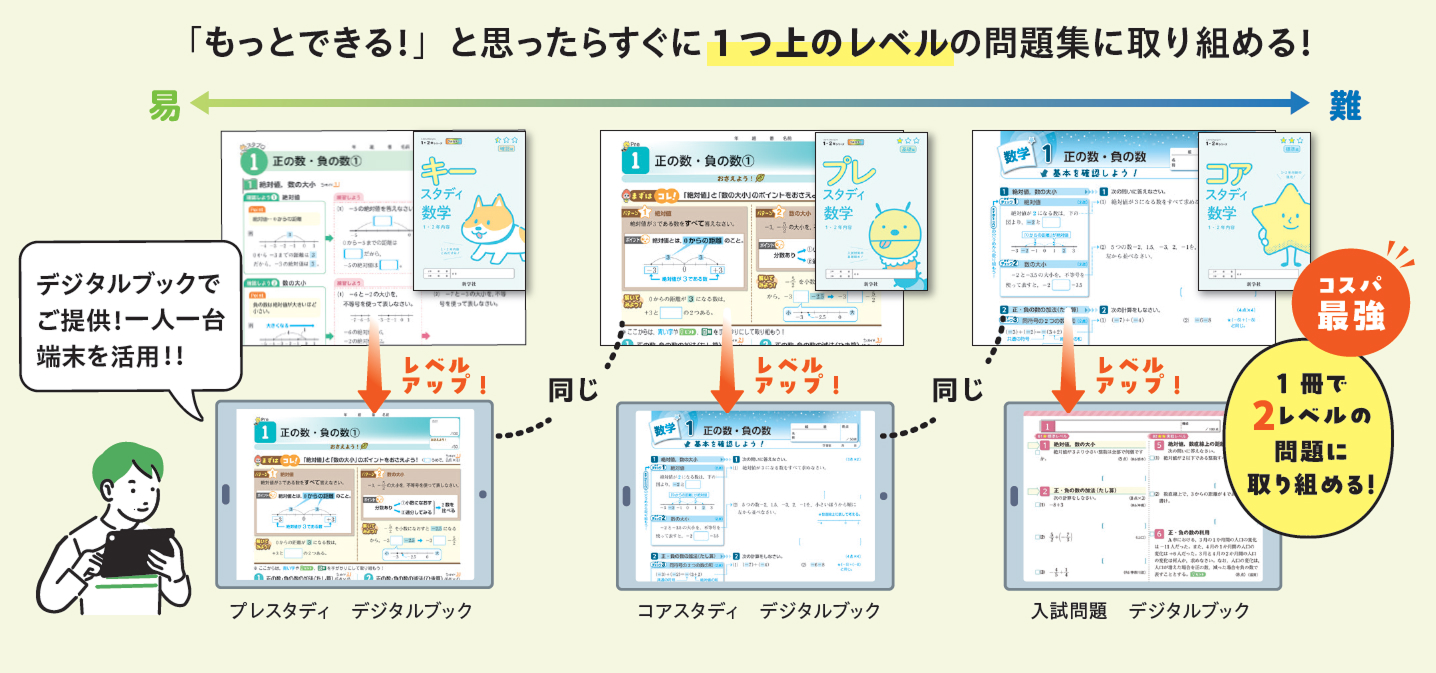 1・2年シリーズは選択した問題集の1レベル上の問題集をご提供します。