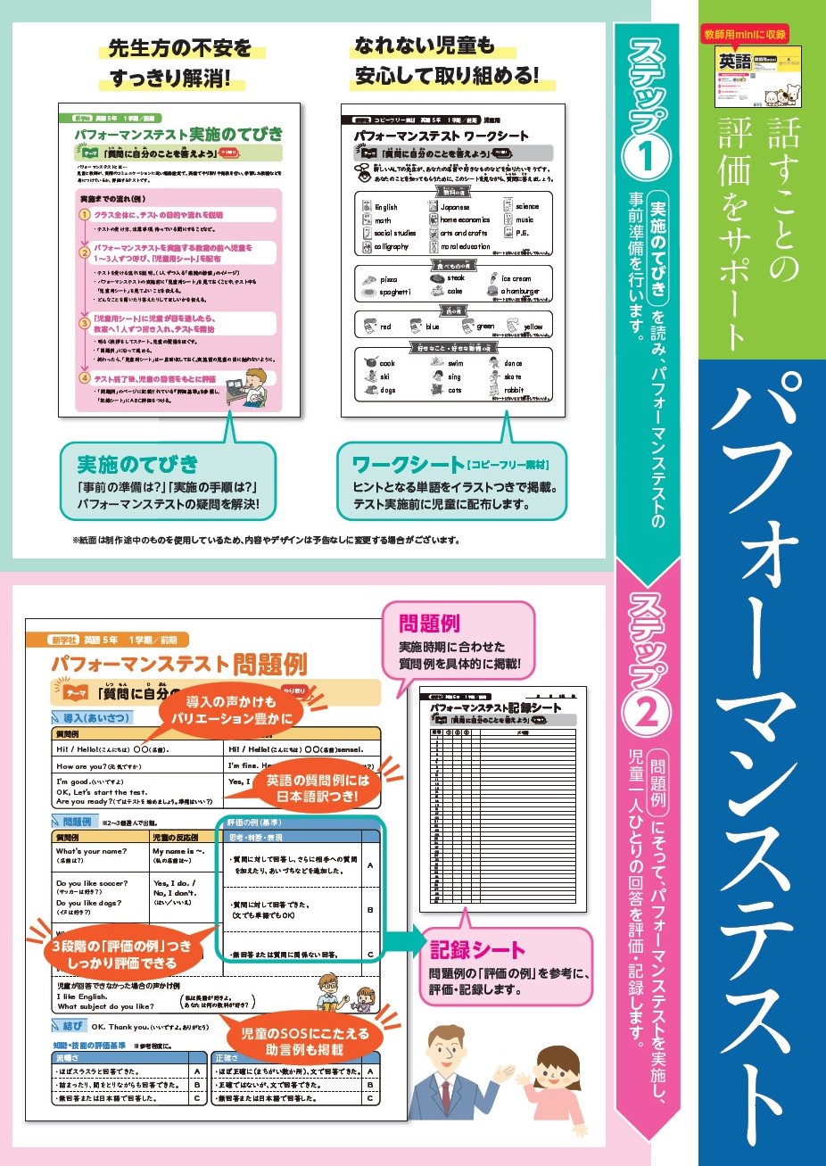 ・パフォーマンステスト付き(内容:実施の手引き・児童用シート・問題例・記録シート)※教師用miniに収録 - デジタル付録