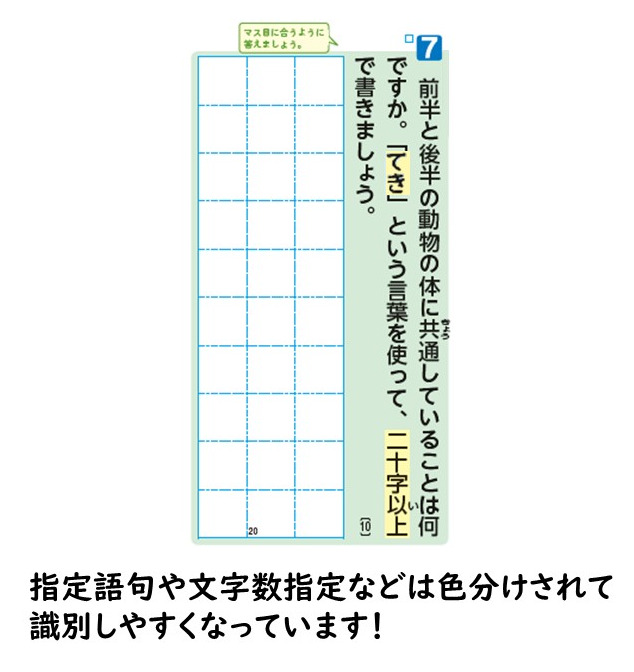 新学社のαテストは、記述問題がマス目の解答欄となっており、指定語句や文字数指定を設けているので、各種実力テストの対策としてお使いいただけます。
