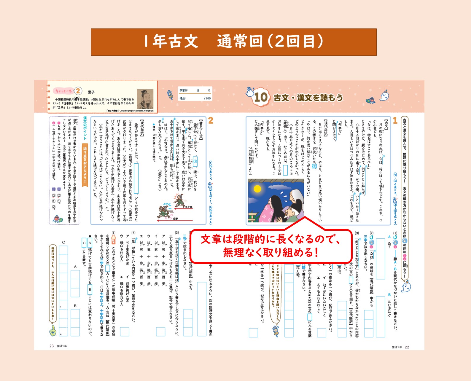 映像化された有名作品や著名人の文章で、読解問題のやる気がアップ!古文はマンガの導入で楽しく取り組め、ニガテも克服できるホンキの冬休み教材!