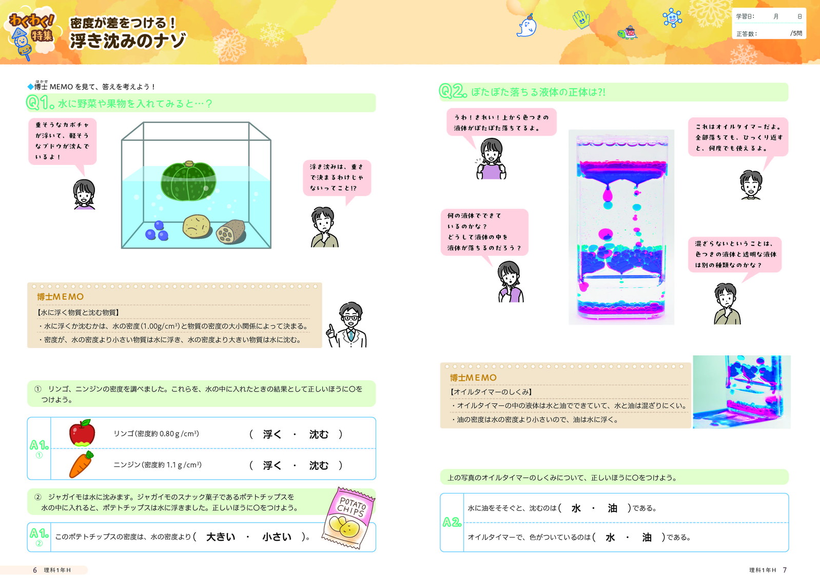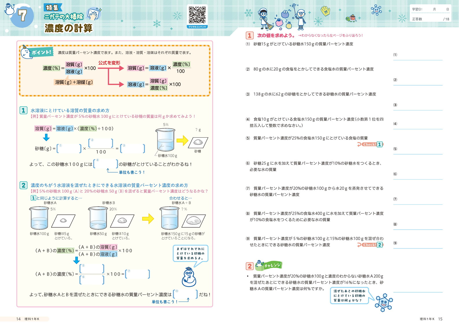 冬休みは、2学期までの学習内容を定着させるための大切な期間。1人でも基礎からしっかり復習できるように制作しました。特集回では苦手を克服できるよう、穴埋めのある丁寧な解説と、豊富な問題パターンを扱っています。また、楽しく取り組めて理科への興味がわくように、ためになる科学者の名言も入れています。ぜひ見てみてください!