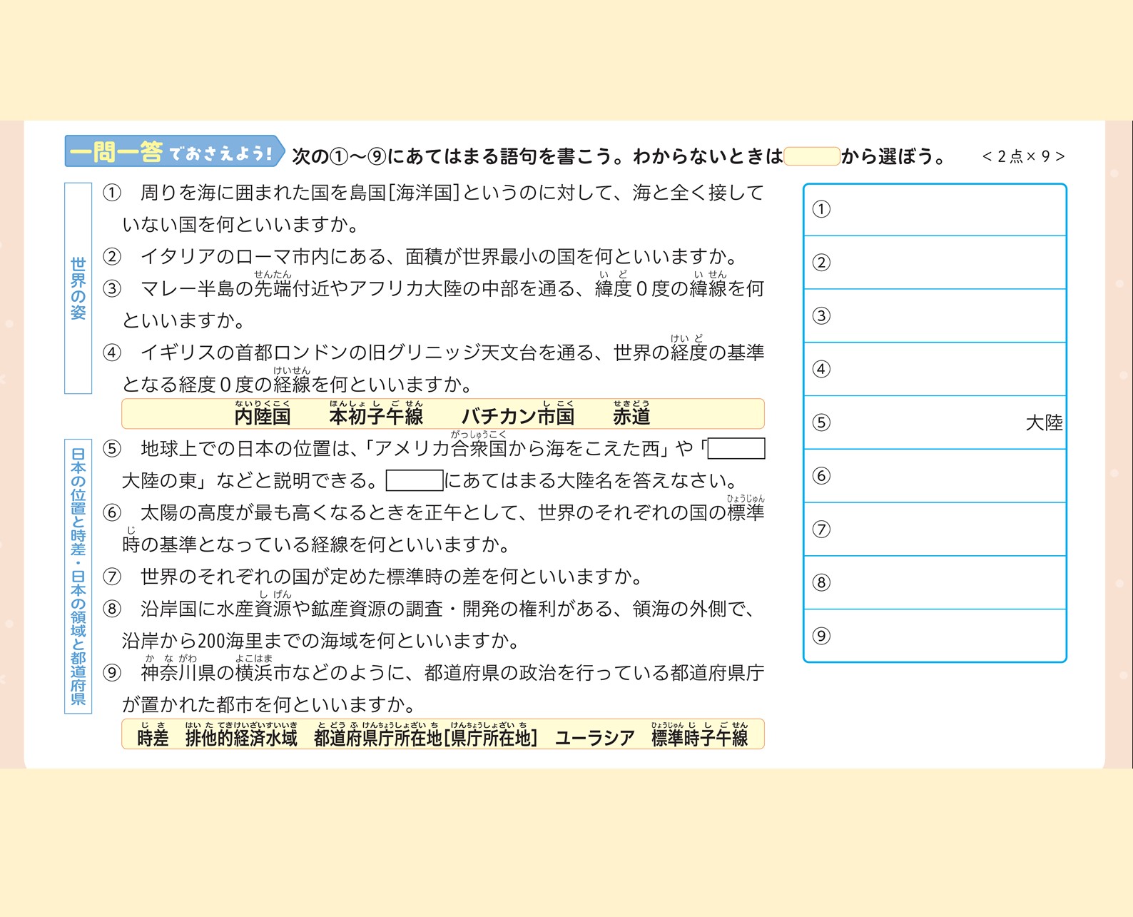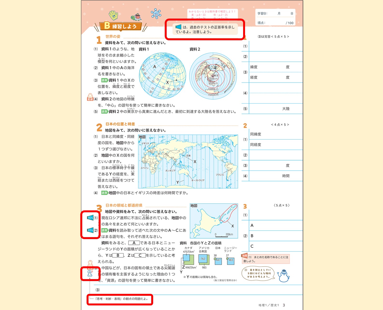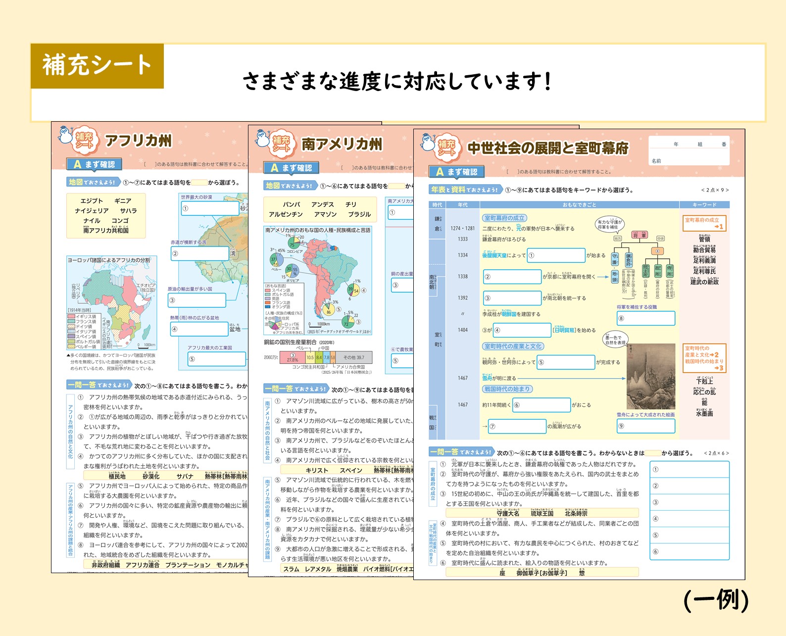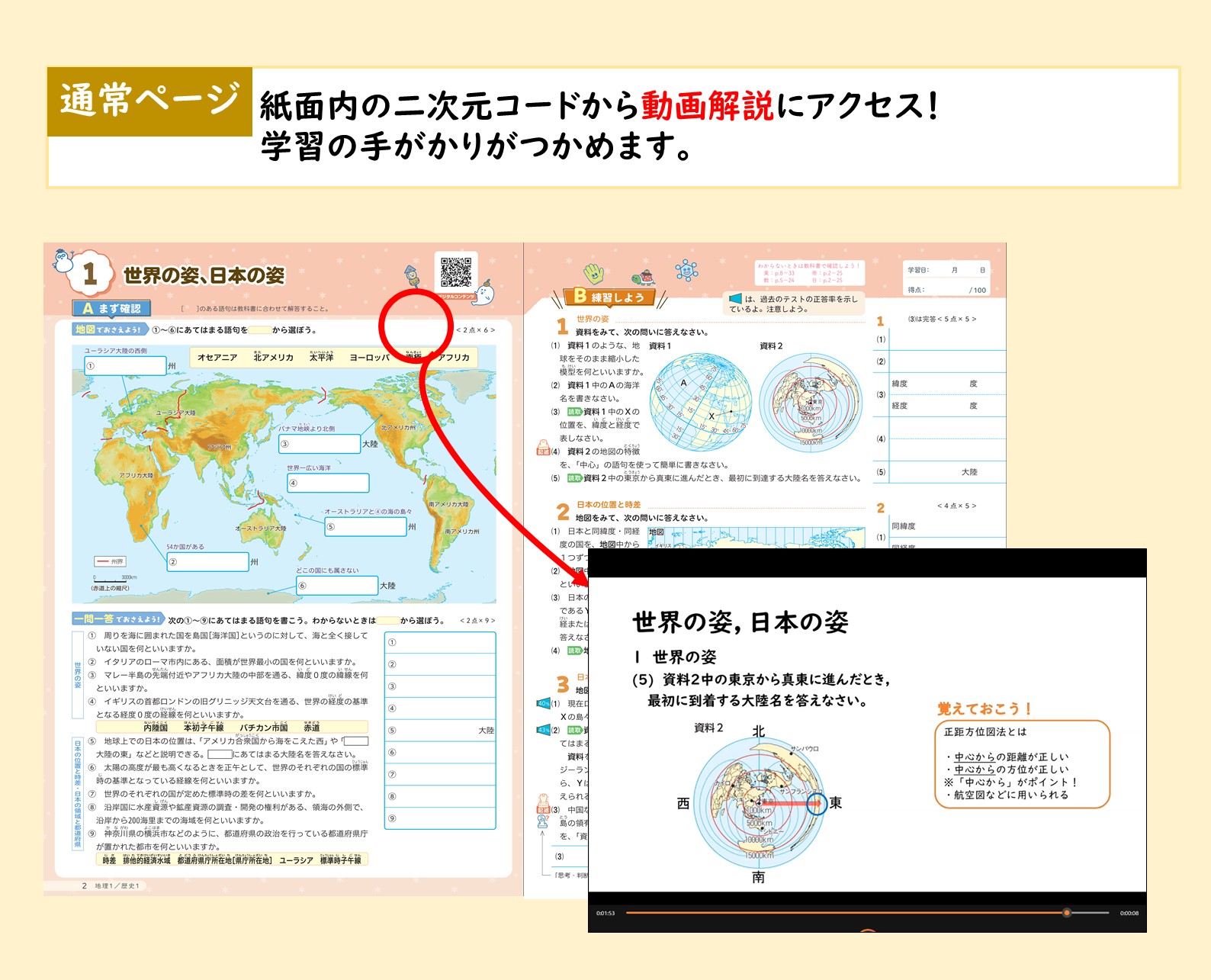 ・地理は世界の気候や日本の気候・産業、歴史は時代の流れを、資料の読み取りや間違い探しを通して楽しみながら学習できます!