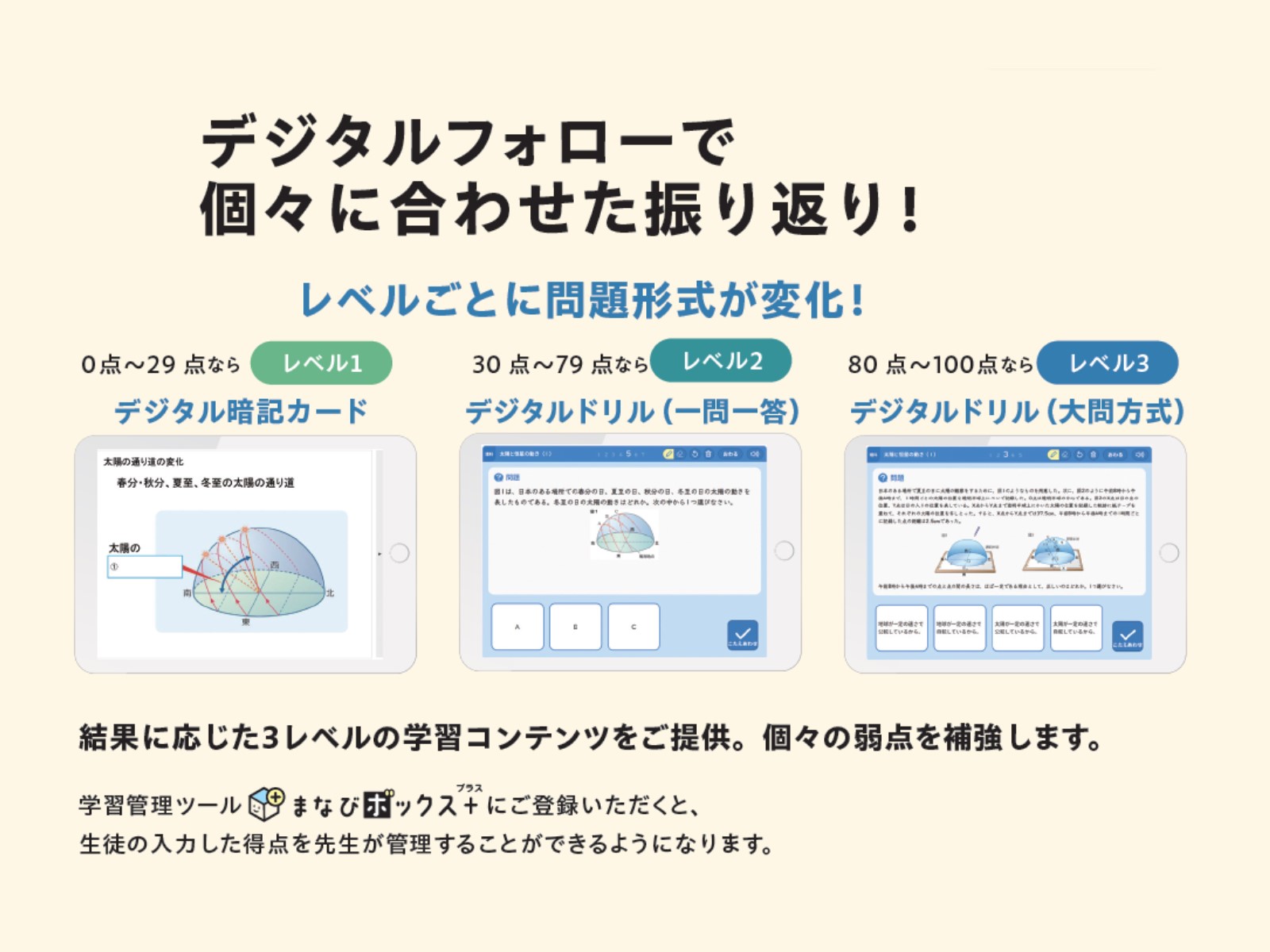 単元プリントの結果に応じたフォローコンテンツに取り組めます!