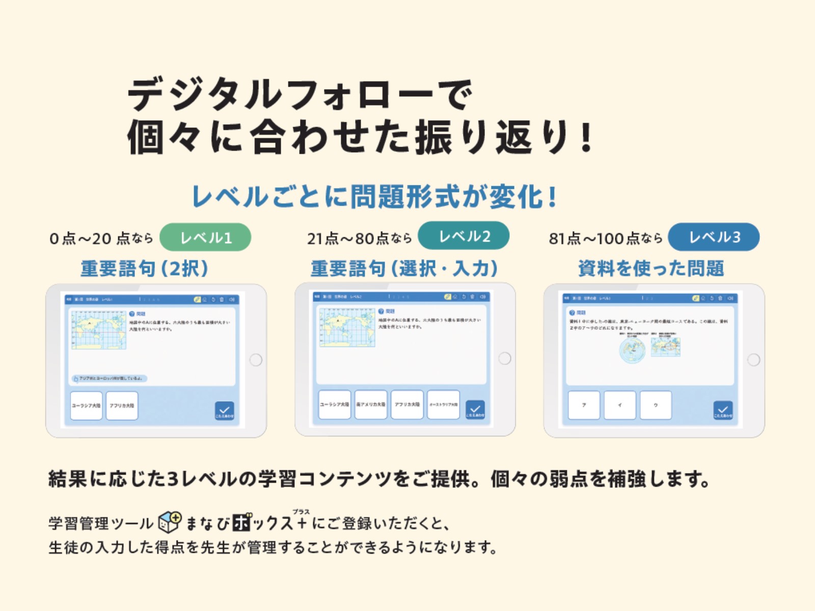単元プリントの結果に応じたフォローコンテンツに取り組めます!