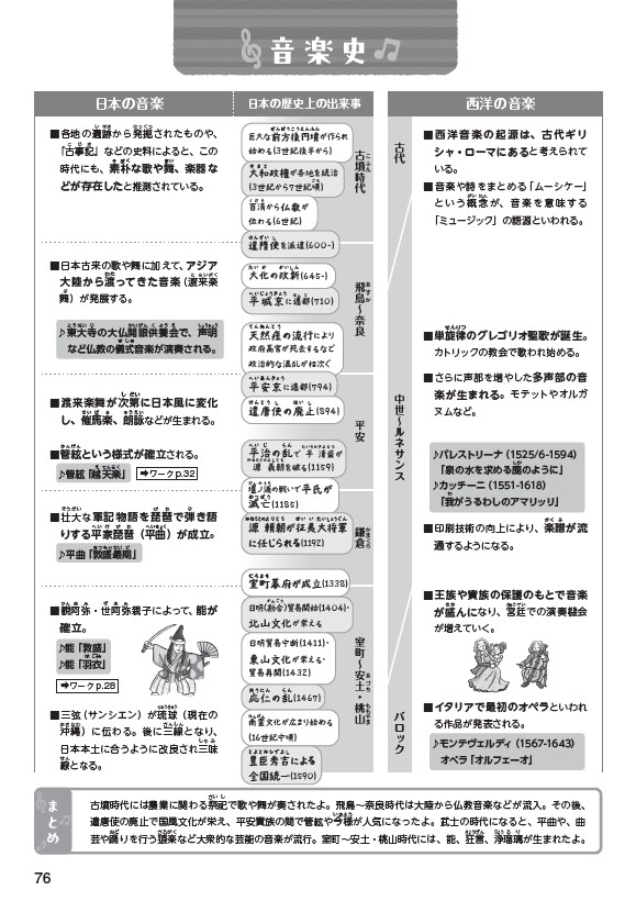 ・全学年の巻末に、音楽史年表一覧がついています。